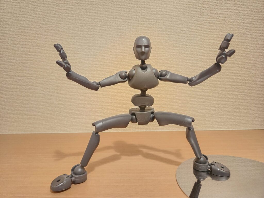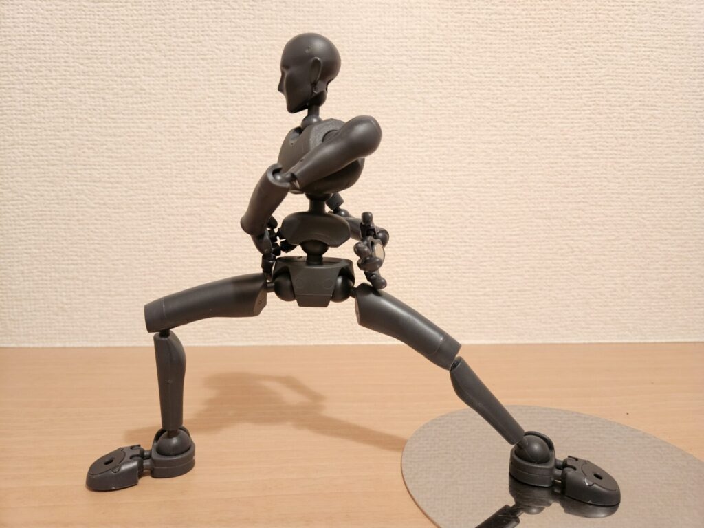 気分が良ければ、リラックスするように腕の力を抜いて大きく腕を振り、更に肩を後ろへ引いて上体を捻り、可能であれば重心を更に低く、さっきよりも左右へ広く、重心移動をしてみましょう。