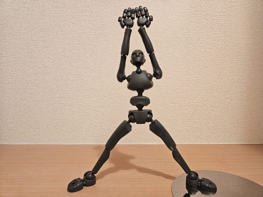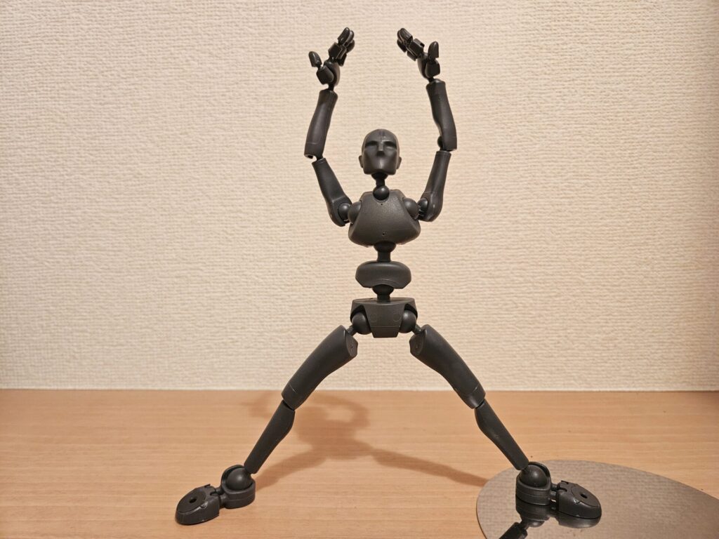 リフト、膝と肘を伸ばしながら、指先を空へ近づけ、視線は手のひらを見上げ(2カウント)、